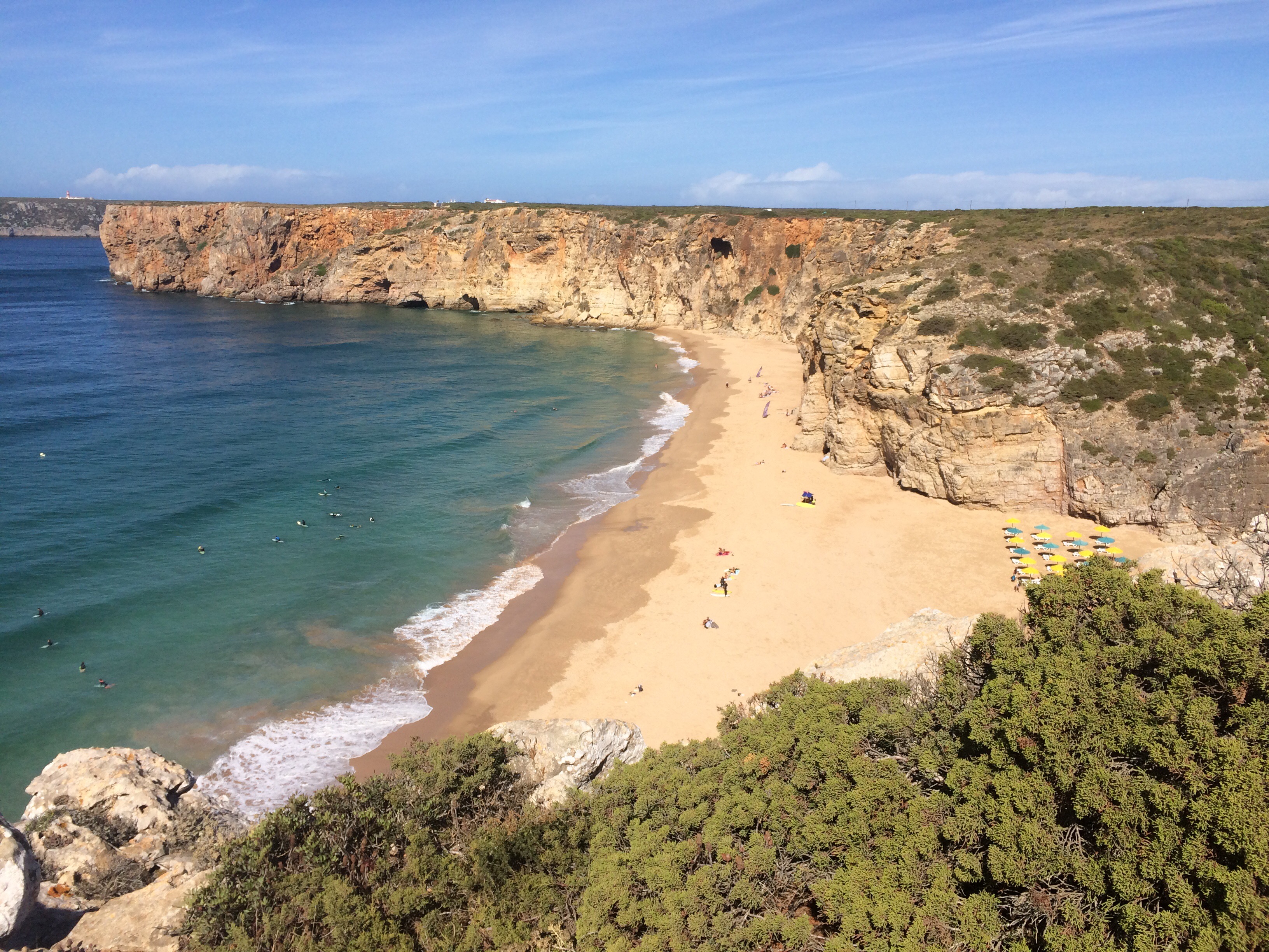 Playa del Tonel: Desde la playa puedes ver desde el Cabo de Sagres hasta el Cabo de San Vicente. La playa esta rodeada de acantilados que la protegen un poco de los fuertes vientos de la zona.